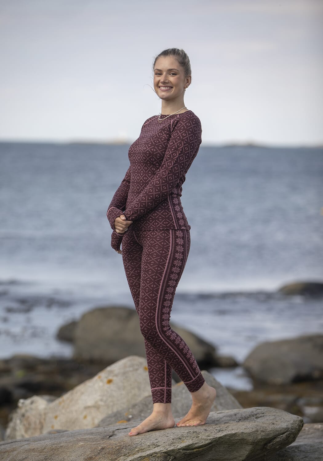 Viking Snø Longs er en tettsittende stilongs til damer i myk ull- og bambus mix. Det perfekte plagg for dager der lett bekledning behøves, eller som lag under andre plagg.