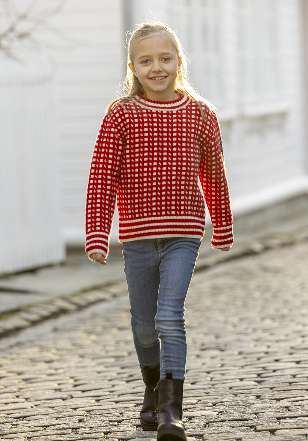 Modellen er 7 år, 125 cm og bruker størrelse 6 år på bildet.