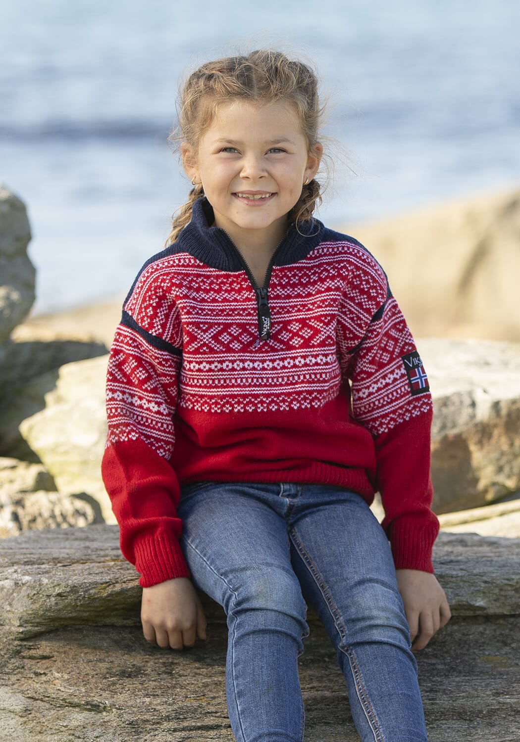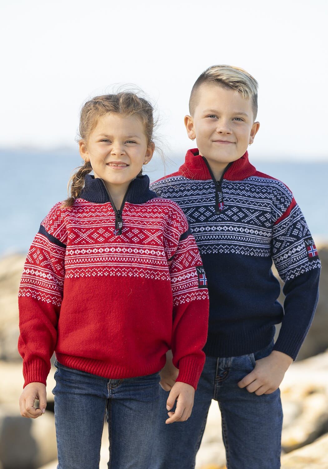 Setesdal Ullgenser har fleece i nakken som gjør den ekstra behagelig å ha på seg. En perfekt ullgenser til barn, og et ypperlig plagg til barnehage og skole.