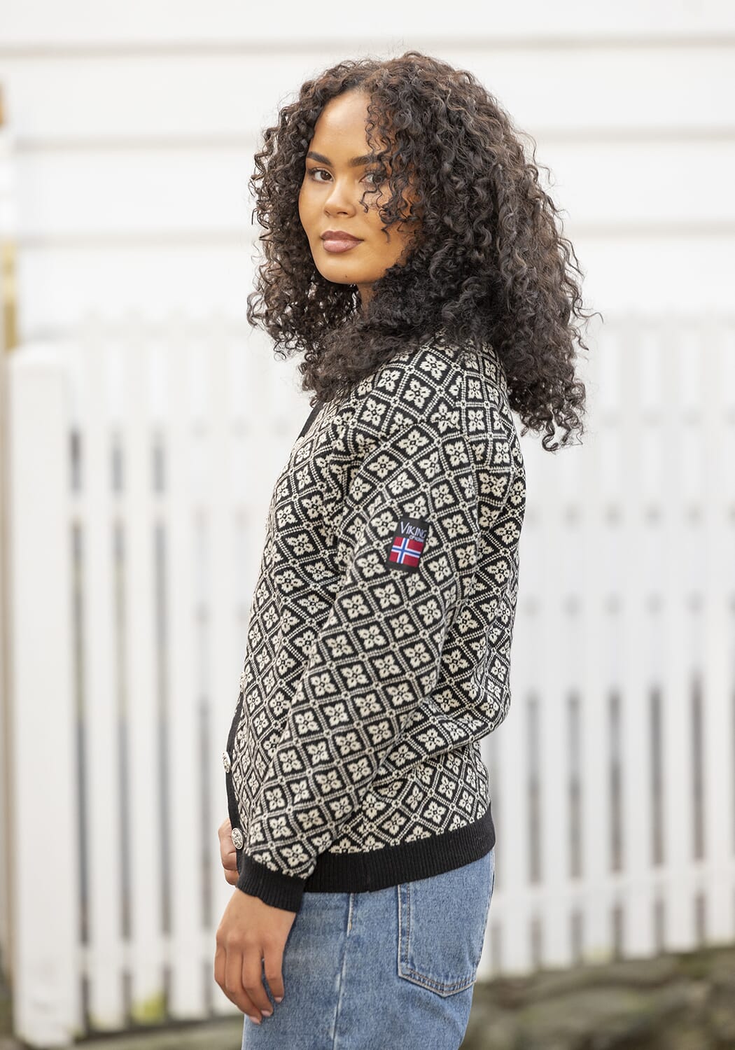 Klassisk og tidløs Elida kofte til dame, strikket i 100 % merino lammeull av høy kvalitet.