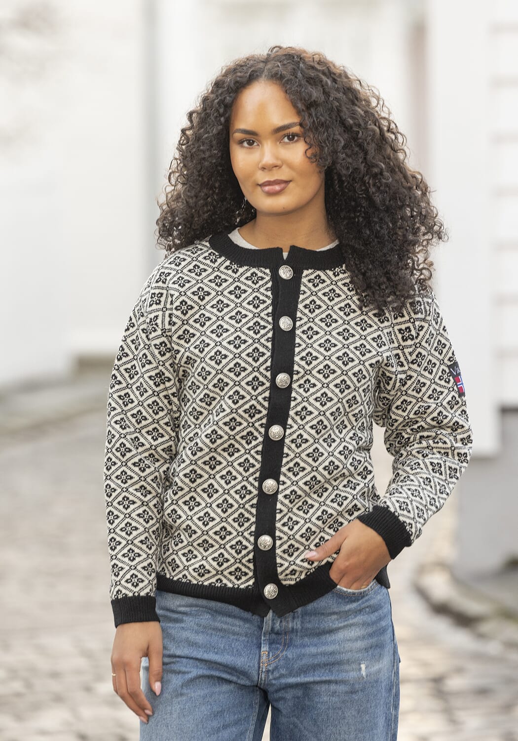Klassisk og tidløs Elida kofte til dame, strikket i 100 % merino lammeull av høy kvalitet.