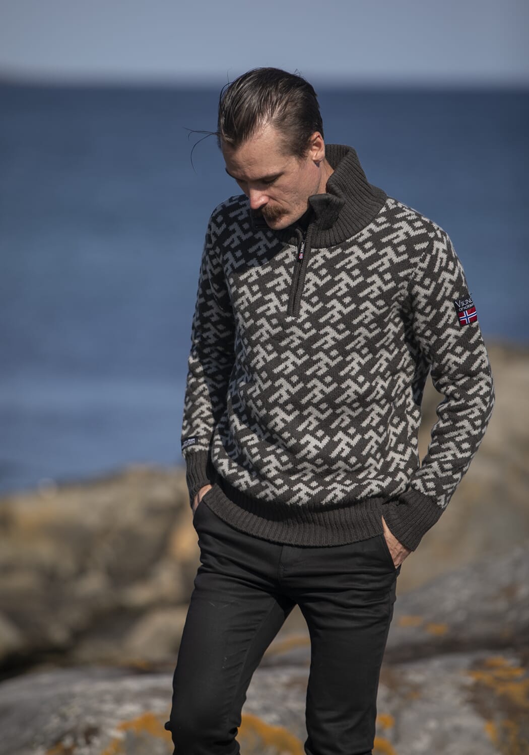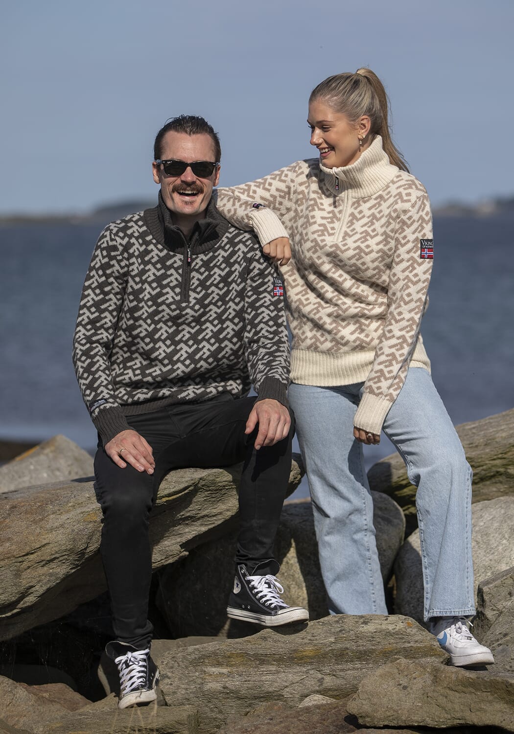Alle våre ullgensere med glidelås har hakebeskyttelse slik at glidelåsen ikke vil gnage.