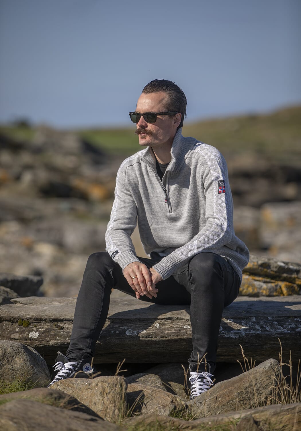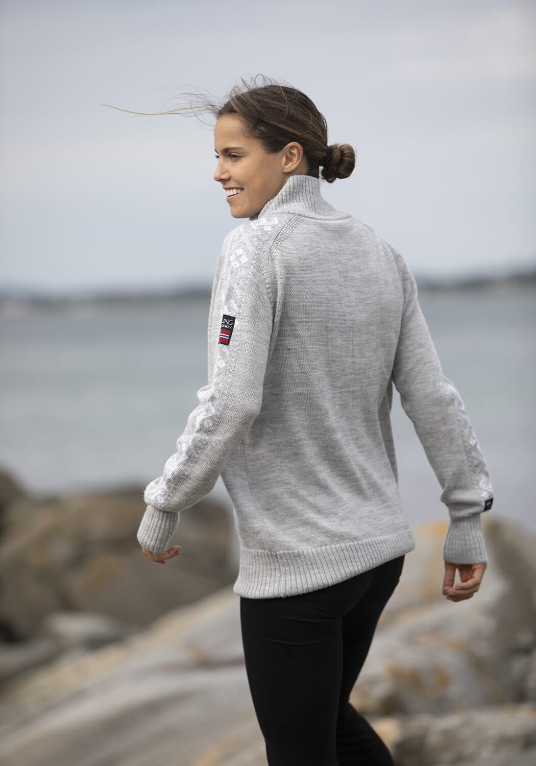 Springeren Ullgenser med mønster på arm er en klassisk flott ullgenser med enkelt mønster langs armen. Mønsteret er av Springeren, et design som kom fram i samarbeid med Team Ingebrigtsen.