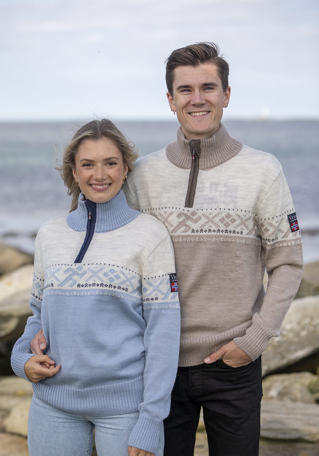 Alle våre ullgensere med glidelås har hakebeskyttelse slik at glidelåsen ikke vil gnage.