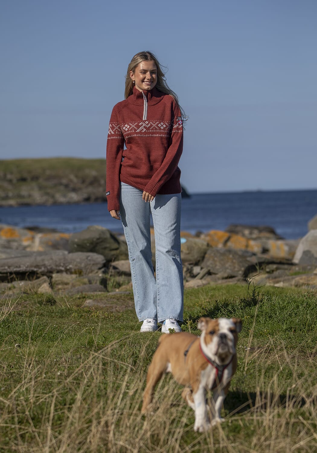Alle våre ullgensere med glidelås har hakebeskyttelse slik at glidelåsen ikke vil gnage.