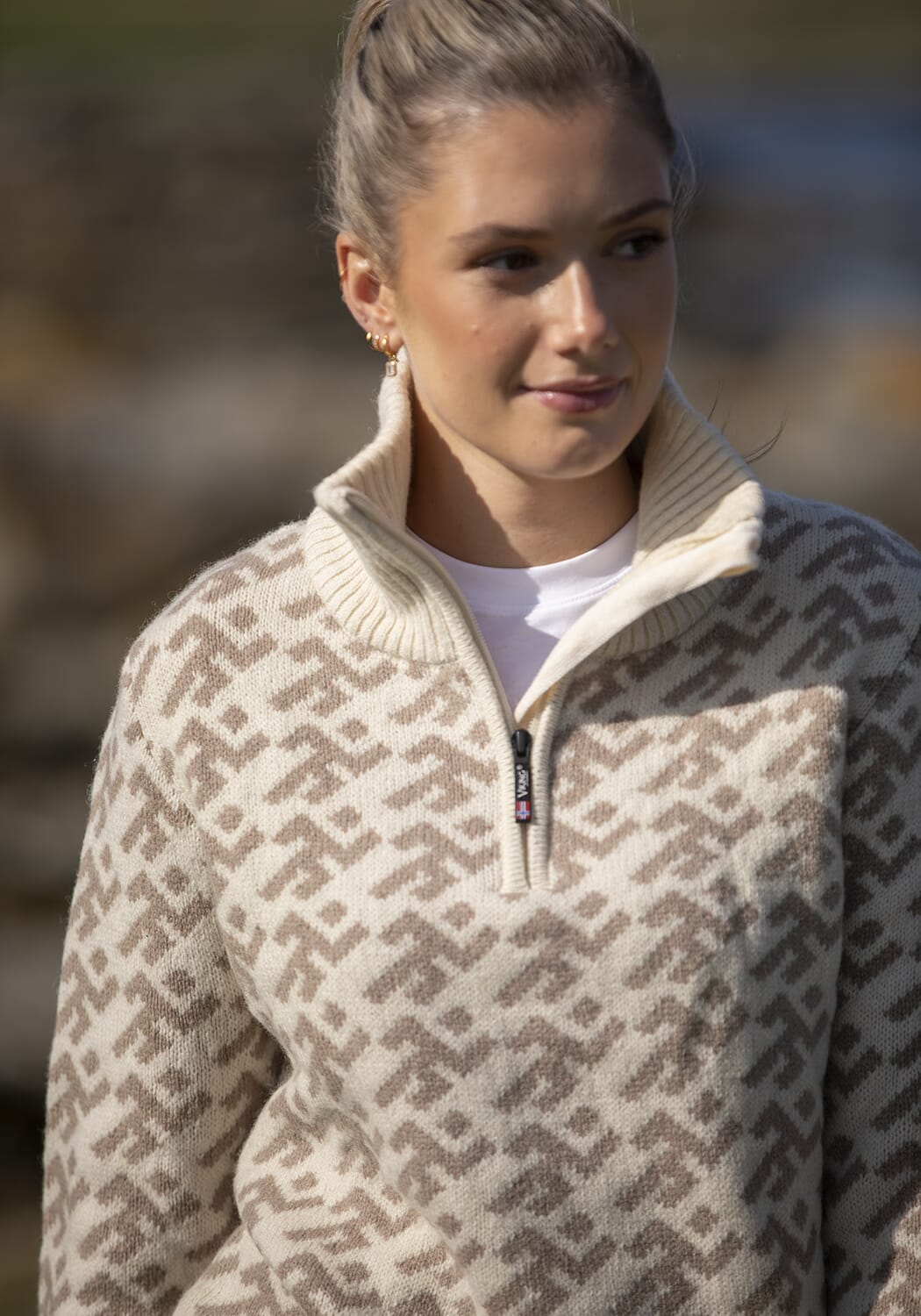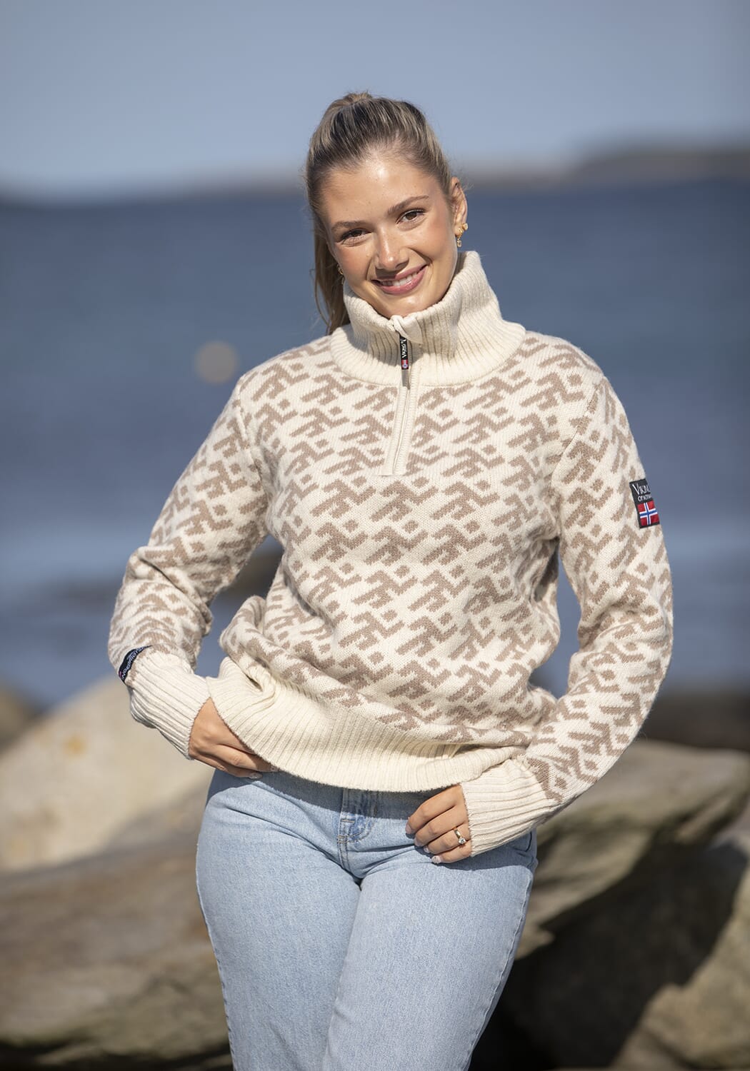 Alle våre ullgensere med glidelås har hakebeskyttelse slik at glidelåsen ikke vil gnage.