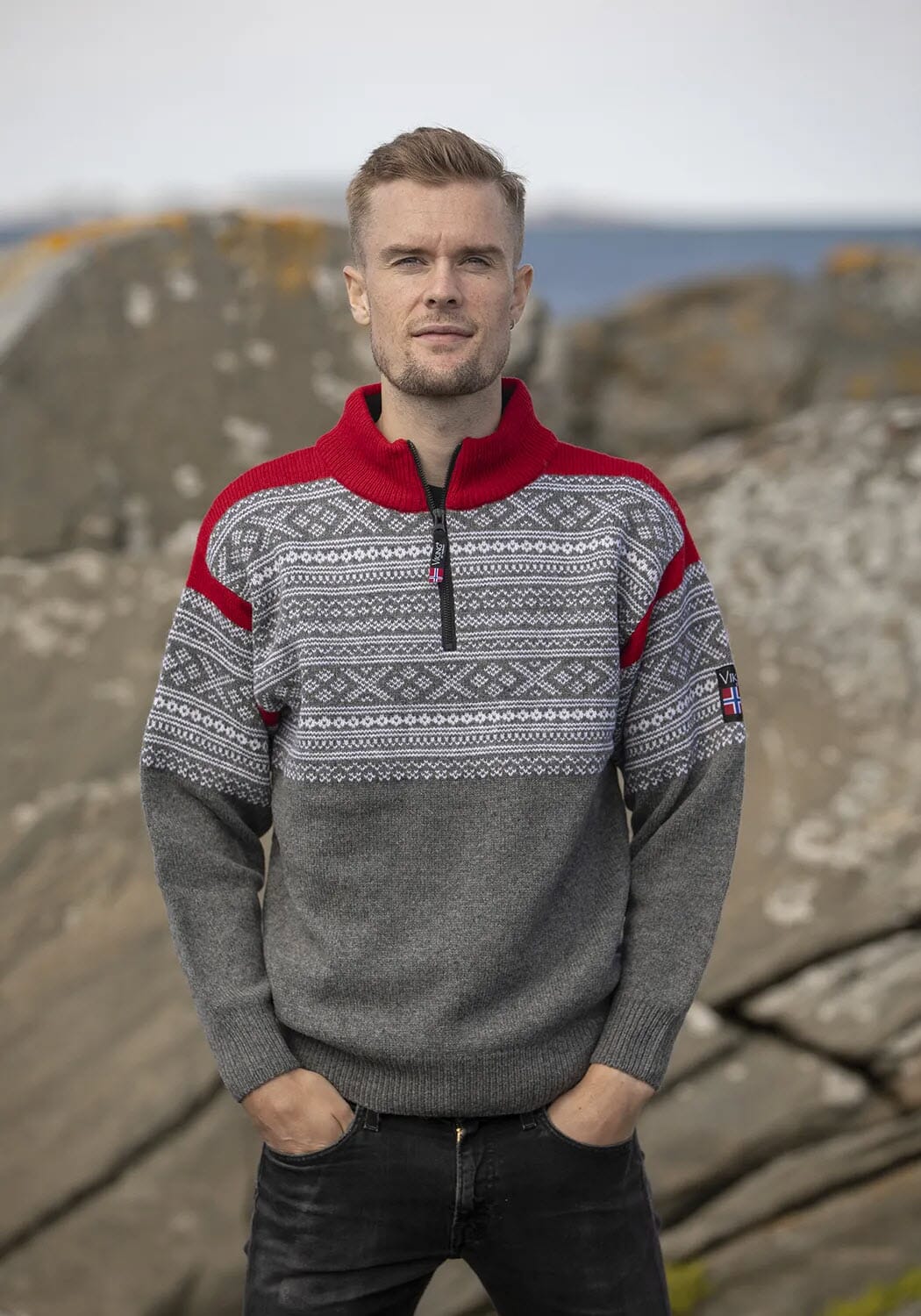 Viking Setesdal Ullgenser er i 100% merinoull med fleece i nakken og glidelås i halsen.